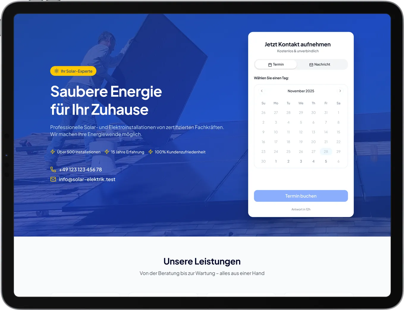 Mit einer Website bist du jederzeit über Google erreichbar. Kontaktformular und Online-Kalender ermöglichen einfache, digitale Kommunikation – auch wenn du offline bist.